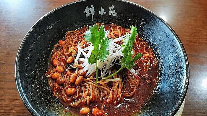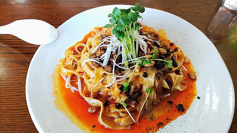 平打ち麺で濃厚なゴマとラー油のソース。
