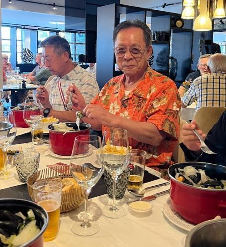 ロードホフの近くにあるエンゼルレストラン 7月からムール貝が解禁になり冬が終わるまでがシーズンです 特に美味しい季節は最後にerが付く月と言われセプテンバーからデッセンバーらしいのですが7月でも十分においしいムール貝です いつも食べるのは白ワイン蒸しのナチュラル味でその他にカレー味やニンニク味もあります 玉ねぎスライスとセロリなども入っており白ワインで煮込んだスープは最後まで飲みきるおいしさです 売りは肉よりもムール貝や舌平目でドーバーソールと言われるイギリスとの間の海で捕れる舌平目も肉厚で絶品です