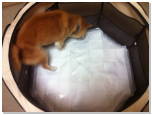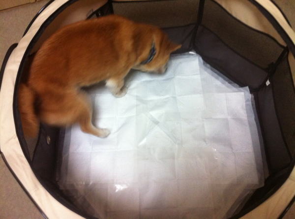 シャンプー後,いったん寝室のサークルに入ってもらって,その間にリビングのサークルをお掃除。