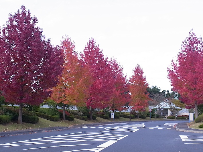 なんと、墓地内の街路樹が紅葉してて