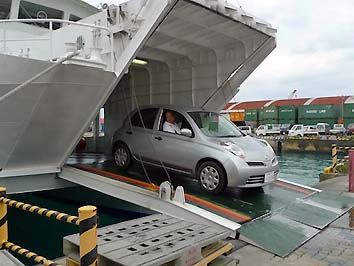 フェリーにはバックで乗る。