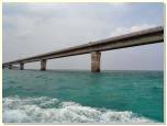 車で渡ってきた池間大橋を、ボートでくぐります。