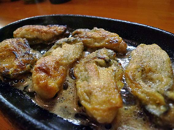でも、まちゃと家が到着するまでの間に、まず店主が出してくれたのはコチラ。牡蠣ソテー、うまし!!