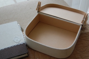 ←作りかけだった小さな箱にかぶせるタイプのフタも完成させました。サイズはまちがってないはずなのに、箱に対してフタが大きすぎるように見えるのは…なぜ? |