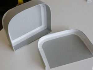 図書館でたくさんカルトナージュの本を取り寄せて、その中から丸みがあってかわいいトランクを作ろうと思い、本のサイズより小さいサイズにしたかったので計算しながら厚紙をカット。書いてあるとおりに組み立ててみました。ところが組み立てたあとで、カーブの部分はどうやって布を貼るのかと頭を悩ませることに。人によって作りかたがちがうのは仕方ないと思うけど、たいていの手芸の本って不親切!写真付きで解説してあるのは1つか2つだけで、あとは作品の写真だけ大きくて作りかたはあまり詳しく書いてない本が多い気がします。 どちらにしても手芸店でトランクを作るために必要な差し込み錠が手に入らなかったので、先に進めません。今日はここまで。 |