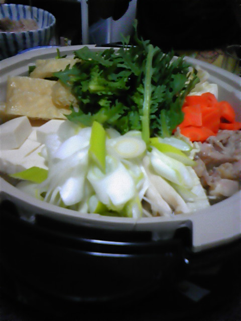 いつものお好み焼き会メンバーでお好み焼き…ではなく、新婚さんの家で鍋パーティ〜♪人様の…それも新婚さんの家でくつろぎすぎ!「Wii」のスーパーマリオを4人同時プレイで遊んだり、くだらない話で盛り上がったり、最高に楽しいひとときでした。 奥さんが作ってくれた塩ちゃんこ鍋もはじめて食べたのですが、めちゃくちゃウマい!食材がたくさん用意してある上に事前に切り分けてあって、好きな具材を好きなだけ♪私の大好きな「マロニーちゃん」もちゃんと用意されていて感激でした。今度ウチでもやってみよっと。男性諸君、結婚するなら彼女のような家庭的で素直でかわいらしい女性がオススメです。私が嫁に欲しいくらい。いかに私がダメ嫁か…痛感してしまうところが悲しいです。 最後のほうは飲んでない私もグダグダになって「ありがとう〜!」とお礼を言って解散。あまりの居心地の良さにだいぶ遅くまで居すわってしまいました。ホント楽しかった〜♪