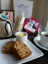 今日は手芸カフェを主催している友人と一緒に手芸もできるカフェ「森のこぶた」さんに行ってきました♪地下鉄「江戸川橋」駅近くのかわいらしいカフェ。オーナーは編みもの作家さんです。店内には手芸関連の本や絵本が置いてあり、自由に見ることができます。雑貨もありました。 中に入ると、さっそく編みものをしているご婦人を発見!とりあえず、手芸はあとにして朝ごはんの時間が遅かったので、軽く食べられそうなパウンドケーキと飲みもののセットを注文。お店が落ち着いてきたところで、オーナーさんに以前の手芸カフェの写真を見てもらいながら話しをしたところ、都合が合えば…と快諾していただきました。次回の手芸カフェはもしかしたらこちらのお店になるかもしれません。せっかくなので私も持ってきたクチュリエのキットで編みものをしました。気づいたら閉店ギリギリ。手芸してると時間があっという間ですね!