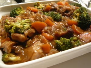 今日は行きつけの整体に行ってがっつりマッサージしてもらったので、家に帰るとどっと疲れが…。アロママッサージのお姉さんが結婚して体をリセットする場所がなくなってしまったので、最近ずっと凝りがひどいです。整体に行ったからといってすぐに元気になるわけではなく少し時間がかかるのでかえって疲れが出てぐったりしていると、トモさんが夜ごはんを作ってくれました。ラッキー♪ 圧力なべを使った「チキンの赤ワインシチュー」です。おいしかった〜!シチューを入れたグラタン皿はかなり大きいサイズなのですが、ふたりで全部食べてしまいました。