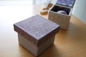←作りかけだった小さな箱にかぶせるタイプのフタも完成させました。サイズはまちがってないはずなのに、箱に対してフタが大きすぎるように見えるのは…なぜ? |