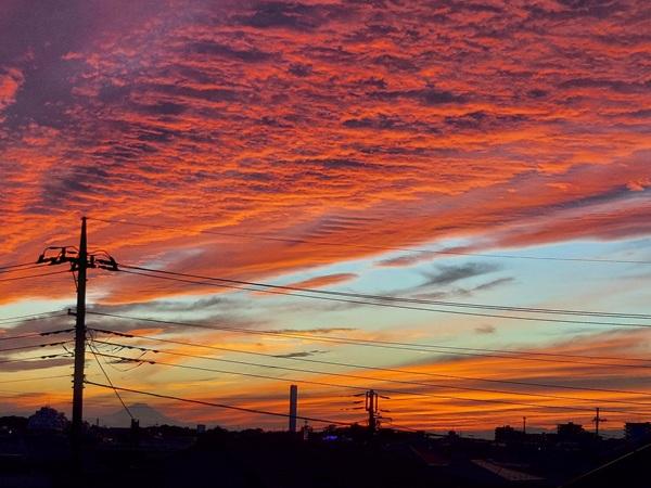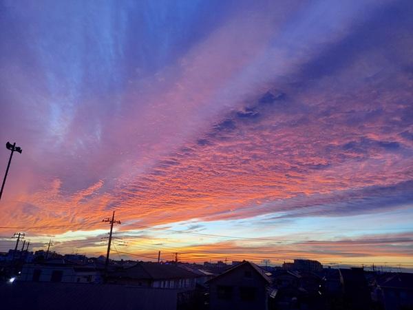 洗濯物を取り込もうとしたら、なんだかシュールな夕空。