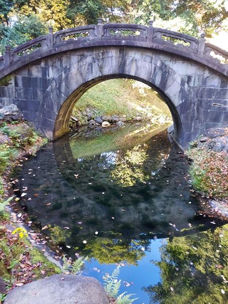 水面に映る部分と合わせて、満月に見えるので、円月橋(えんげつきょう)です。