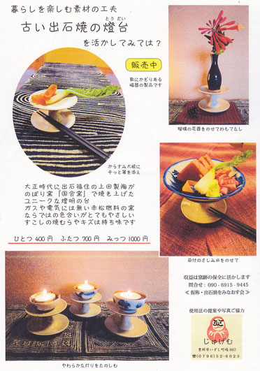 大正時代に出石・福住の上田製陶が、のぼり窯「国会窯」で焼き上げた燈明の台なんです。