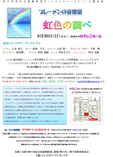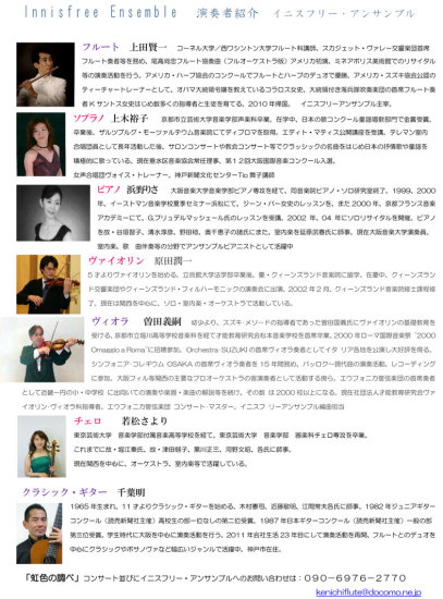 イニスフリーの演奏会のご案内も回を重ねるごとに充実してきました。カナダでゆったりと仕事を続けていらした上田さんにとって、日本での催しはまた違った色合いなのかもしれませんが・・独特のゆるやかな温かさは心地よいものです。
