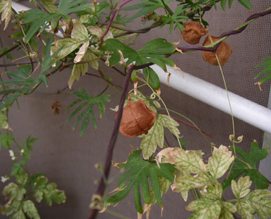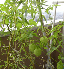 今年、ベランダで初めての花を咲かせてくれた草木たち。まずは名前も知らないこの花。ベランダにおいてある石の水盤の水をのみにくるヒヨちゃん(ヒヨドリ)が お礼にピッと落として行った糞の中にあった種が芽を出し大きくなりました。 |