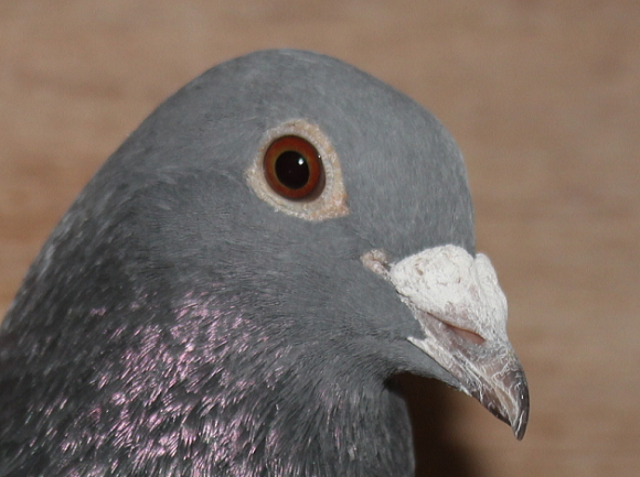 今朝筑波の鳩舎にお邪魔して朝ご飯をごちそうになっているのが1羽います